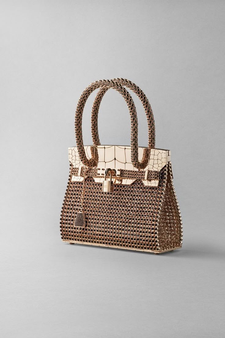 The Rose Gold Kelly Bag is another high-value Hermès design on the list. It is crafted from solid rose gold and was created in partnership with Pierre Hardy. 1,160 diamonds are used to adorn this purse.