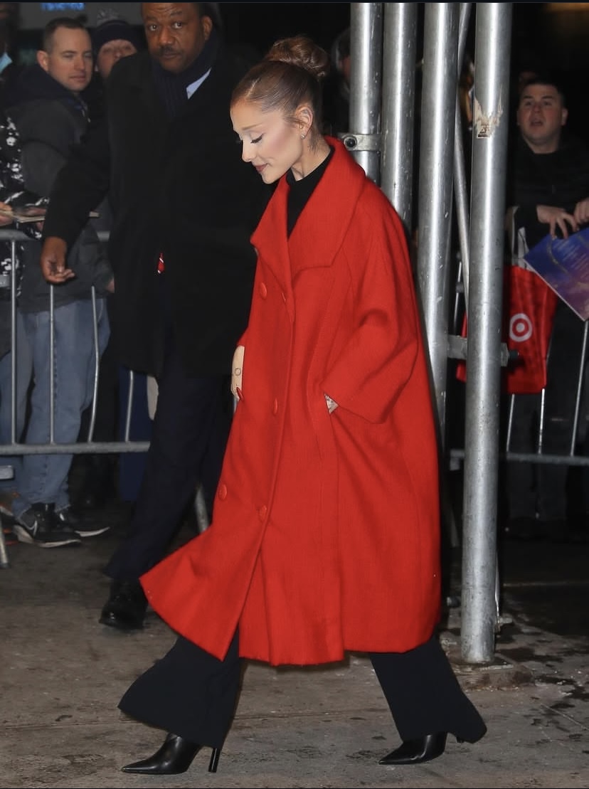 Red looked bold as Ariana Grande stepped out in a dashing coat for the “Wicked: For Good” screening in New York City, a color that perfectly fits the winter festive mood. The 32-year-old actress and singer was spotted in a long oversized coat as she made her way to the AMC Theater.