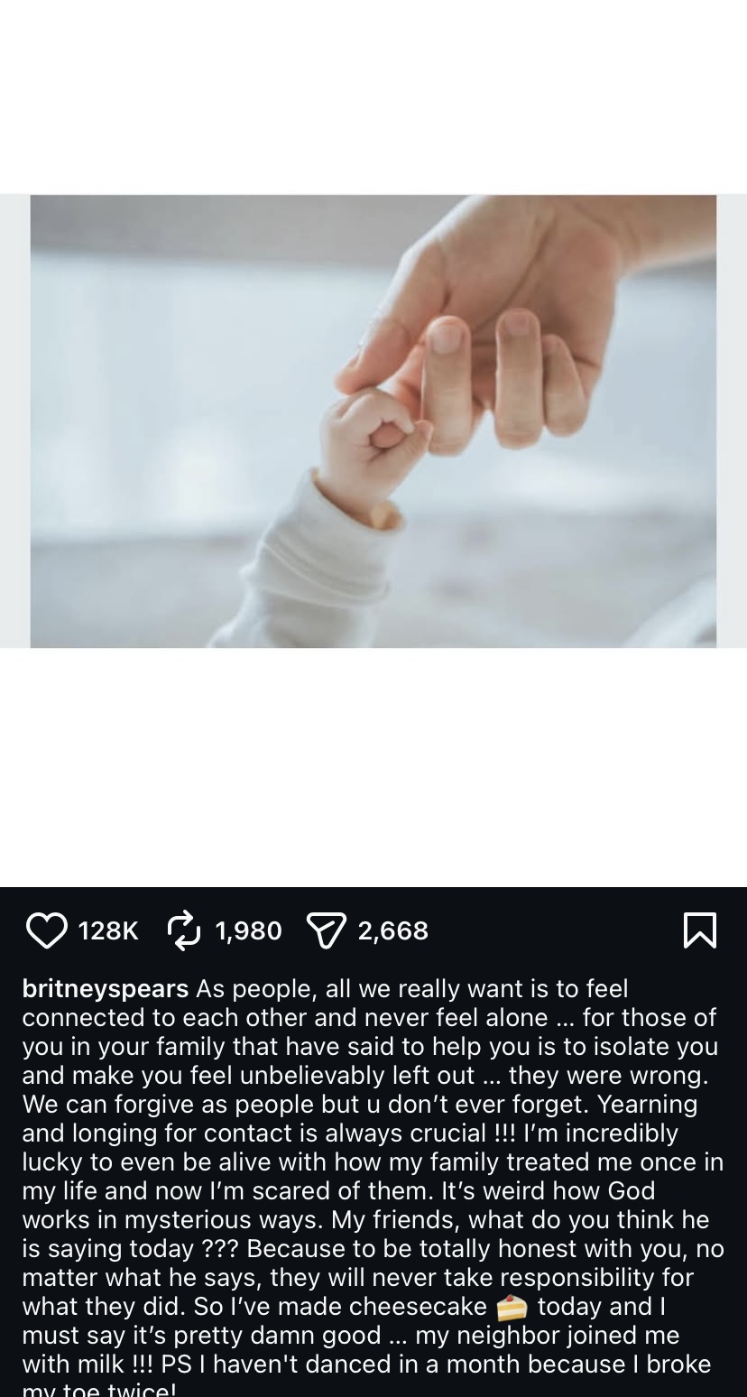 This week, Britney Spears shared a heartfelt post on social media about her family.