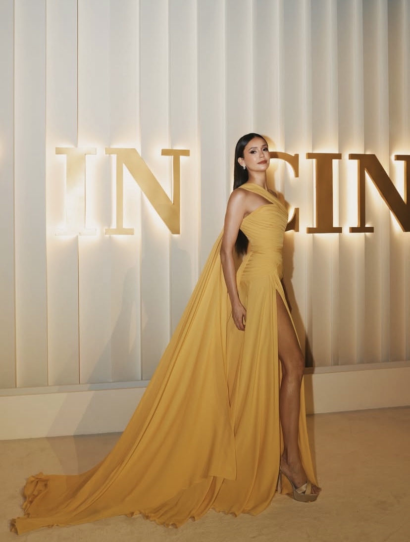 Dobrev stepped onto the carpet in a gown that would draw immediate attention, a flowing, golden-sunset piece that glowed under the festival lights. The color alone stood out on its own, warm, rich, and perfectly in tune with the festival’s desert-meets-coastline charm. The shade can be strong, but on her it felt controlled and well-placed.