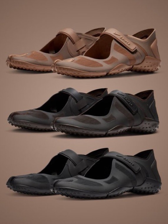 The original Nike Air Rift, released in 1996, drew inspiration from the barefoot running techniques of athletes in Kenya’s Great Rift Valley, and tabi toe (split toe) that allows natural foot movement – That split-toe feature echoes the famous Maison Margiela Tabi shoes (inspired by traditional Japanese tabi socks).