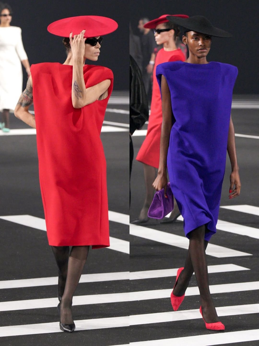 Several musicians appeared on stage as the collection was shown. Performers included Mon Laferte, Lunay, Mahmood, Feid, Santos Bravos, Lil Mr. E, and Latin Mafia. The musicians performed throughout the show, intertwining with the runway presentation.
