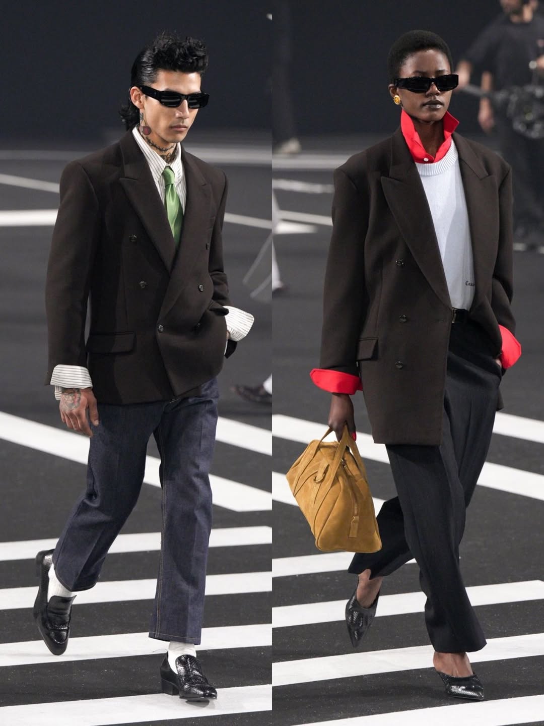 The show started with slim, tailored pieces, straight-leg trousers paired with blazers and coats. This choice of fitted silhouettes marked a shift from some of Chavarria’s previous work, which often emphasised oversized shapes. A section of the show included workwear pieces under the “Big Willy” label, such as bomber jackets and hoodies. The lineup included items from Chavarria’s work with adidas Originals, featuring tracksuits and sportswear inspired by Chicano culture and streetwear aesthetics. Some final looks in the lineup included outfits with contrasting textures and colors.