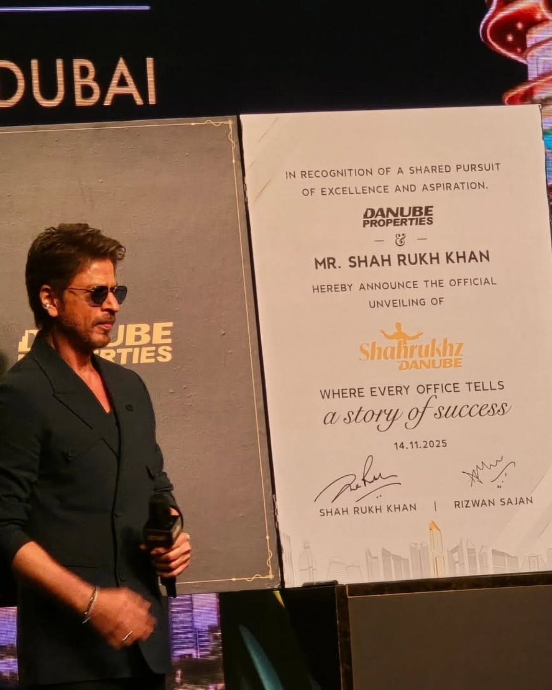 In an accompanying video, SRK said in Hindi, “We don’t chase dreams, we turn them into reality. Legacy isn’t inherited, it is made. This building is part of that legacy.” He also applauded Danube Properties, calling the brand “a spirit of aspiration and excellence” that mirrors his own journey of hard work and perseverance.