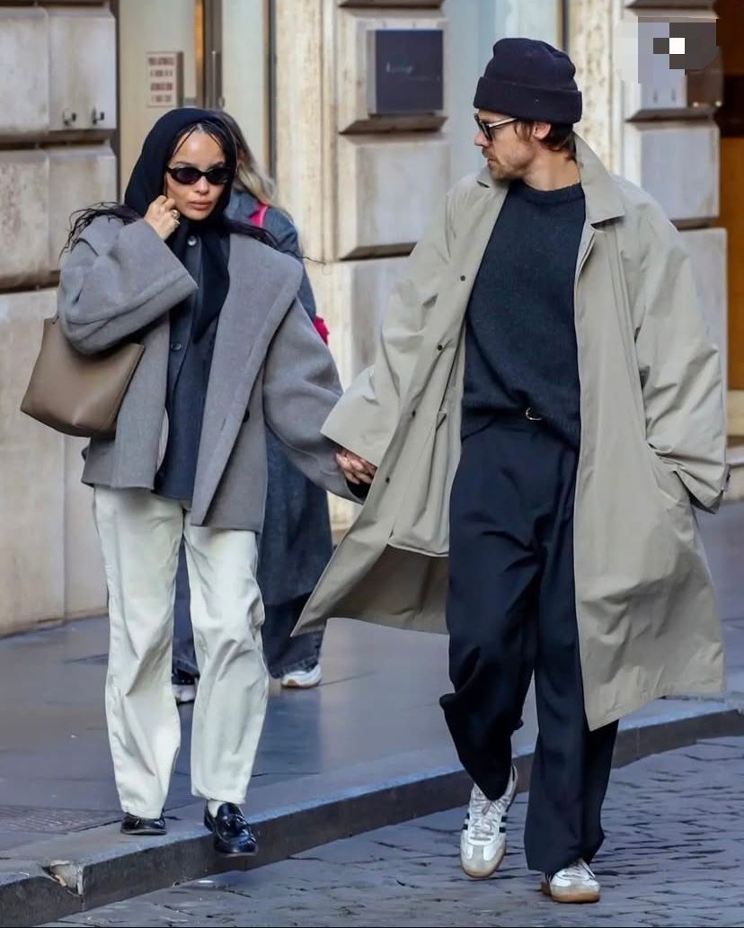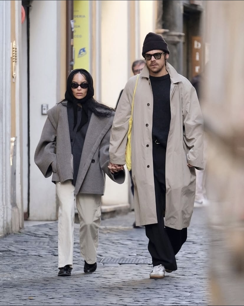 Returning to Rome, where they were earlier this year, American stars Zoë Kravitz and Harry Styles took a stroll around the Italian cobblestone streets while wearing two different styles of relaxed fall pieces. They went hand in hand, matching each other’s pace and mood.