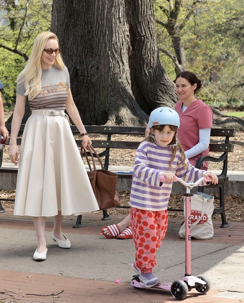 Dressed in an all-pink outfit, the CEO of 11:11 Media, Paris Hilton appeared to channel the iconic Elle Woods from “Legally Blonde”. She wore a soft pink button-up cardigan paired with a matching polo shirt and a pleated midi skirt. She added pink-tinted sunglasses and a pink quilted Gucci handbag.