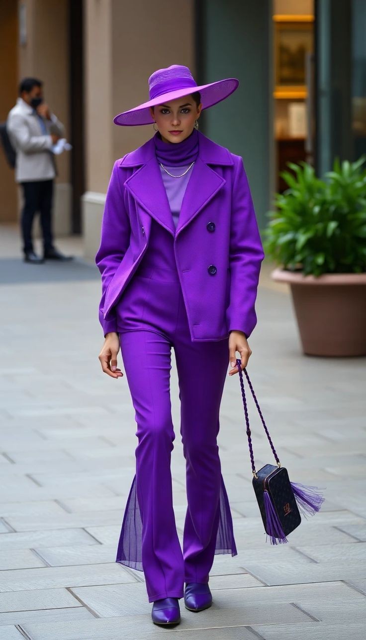From high-class outings to casual dinner dates, if you need something that attracts attention and spices up your look, then electric purple should be your go-to in fall.