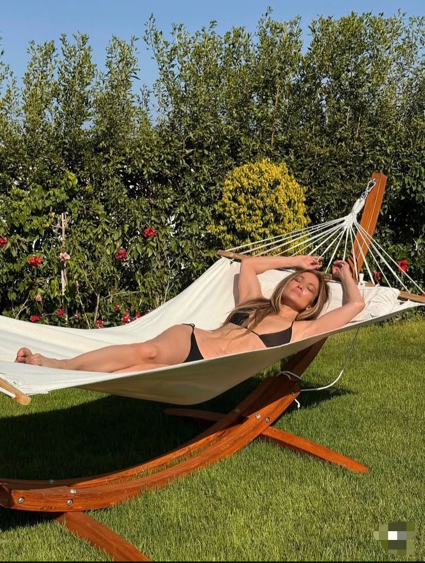 She lounged in a string bikini—black, sleek, was nothing but classic appeal, perfectly draped on a hammock set under the warm Egyptian sky. The photo showed off her incredibly fit physique, while the sunglasses she wore added a relaxed flair giving the perfect vacation mode.