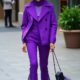 On her, its shiny surface deepened the burgundy tone. The outfit combined old-school glamour with modern street style.