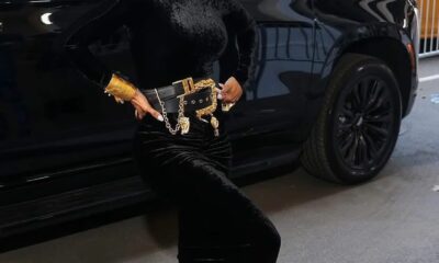 Cardi B’s Glossy Burgundy Leather Set Steals the Street Outside SNL