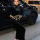 Kim Kardashian Attends Skims Holiday Party in Velvet and Fur