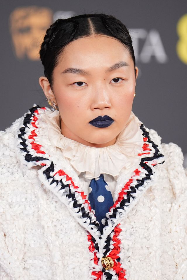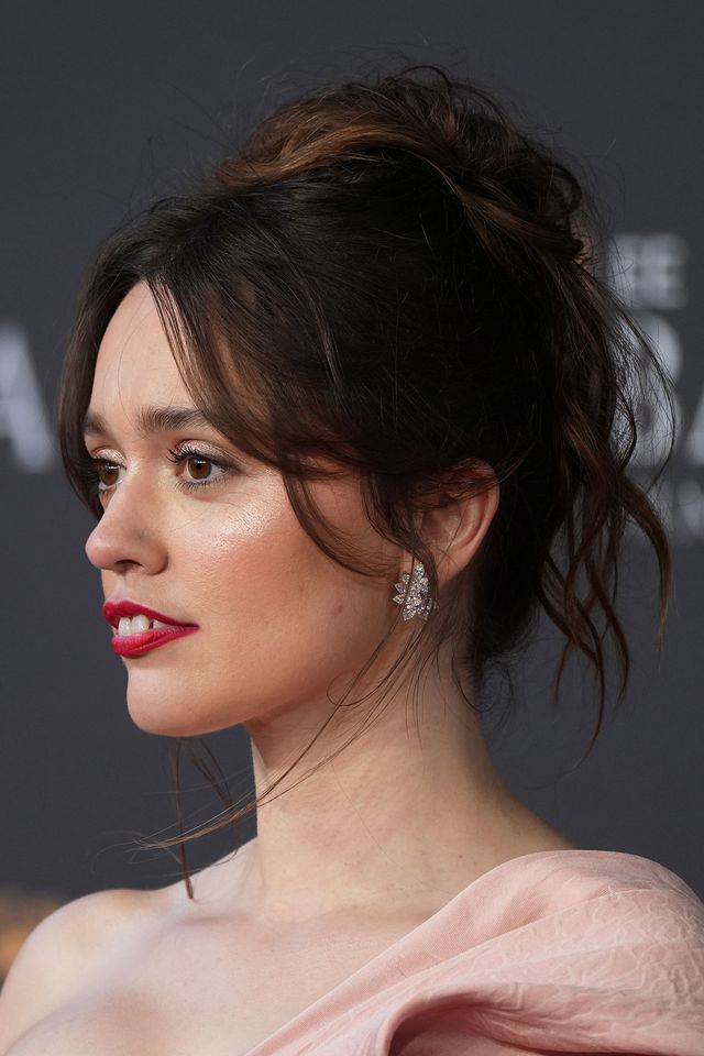 Aimee Lou reminded us that red lipstick will always be a chic choice for the red carpet, her rose‑tinged shade matched her champagne eyeshadow perfectly and her baby pink Emilia Wickstead gown. For her hair, she went with a loose, face‑framing finish.