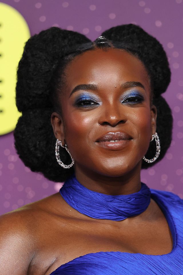 Winner of this year’s best supporting actress award, Wunmi Mosaku set the tone for the evening in a royal blue Ahluwalia dress. She wore a shimmery matching eyeshadow to complement the gown, courtesy of make-up artist Joy Adenuga, and her hair-packed rounded section was done by Dionne Smith.