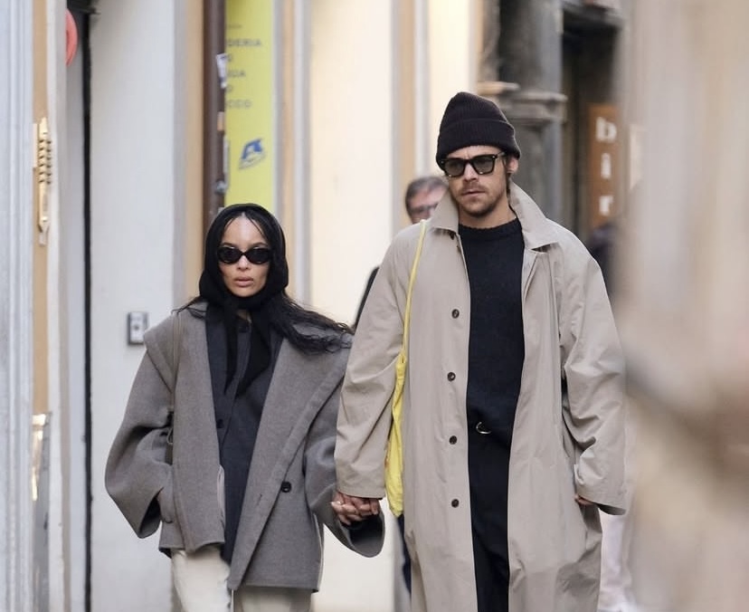 Returning to Rome, where they were earlier this year, American stars Zoë Kravitz and Harry Styles took a stroll around the Italian cobblestone streets while wearing two different styles of relaxed fall pieces. They went hand in hand, matching each other’s pace and mood.